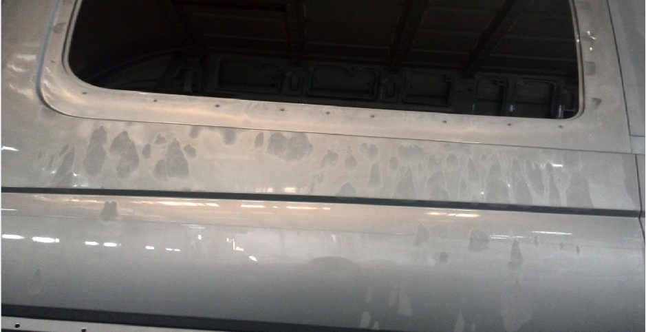 基材自帶類油污主要是金屬白坯在出廠及運輸過程中的金屬防銹油、沖壓焊接工序的拉延油、切削油以及少量的金屬基材清洗油(如使用汽油進行重油污預(yù)擦拭)。這類油污的粘度相對較低,大部分通常會在前處理環(huán)節(jié)進行脫脂水洗清除,但是也有少量因脫脂清洗效果不好以及折邊縫隙及內(nèi)腔結(jié)構(gòu)復(fù)雜清洗不到位導(dǎo)致殘留在金屬白坯件上,在工件進入電泳槽的同時,殘留在金屬白胚件上的殘留油污進入電泳槽液逐步污染電泳槽液,改變電泳槽液表面張力。在經(jīng)過電泳槽后電泳形成電泳濕膜后,折邊縫隙及內(nèi)腔中殘留的這一類油污在受到高溫烘烤的過程中飛濺出至濕膜表面影響濕膜的表面張力。
