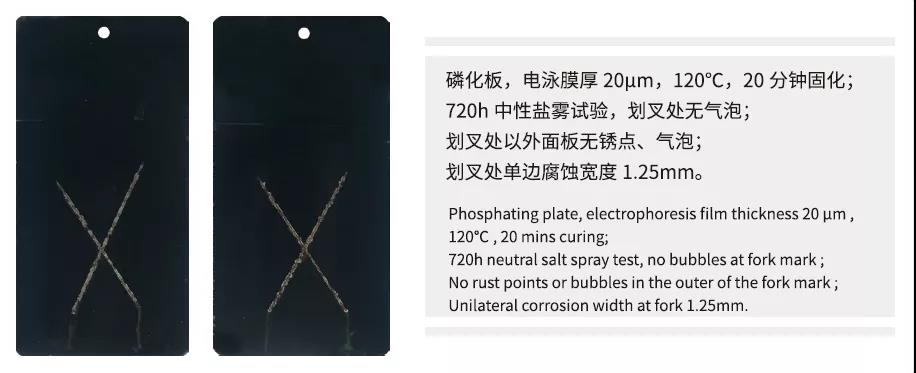 OHT超低溫系列產(chǎn)品同時(shí)兼具優(yōu)異的耐鹽霧性能,磷化電泳板通過(guò)720h,耐中性鹽霧測(cè)試,單邊腐蝕寬度1.5mm以內(nèi)。