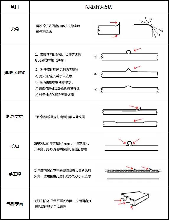 01結(jié)構(gòu)處理:對(duì)于底材本身須進(jìn)行一定的處理,如銳邊打磨、飛濺物去除、焊孔補(bǔ)焊及磨平等等。