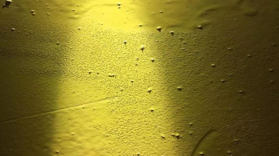 01溶劑清洗:除去表面油脂,通過溶解和稀釋表面污染物來清潔金屬表面。溶劑清洗的分類:酸性清洗、堿性清洗、中性清洗、溶劑型清洗。如圖,在有油脂的工件上施工后,會(huì)造成涂層表面的早期失效。