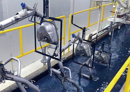 陰極電泳專用的掛具(如擺焊、掛架等),尤其是電泳后換下,不通過烘干室和前處理的反復(fù)用的掛具,其表面也需要進行絕緣防蝕處理,其工藝是經(jīng)噴砂處理,刷涂2-3道電泳槽內(nèi)壁用的涂料。