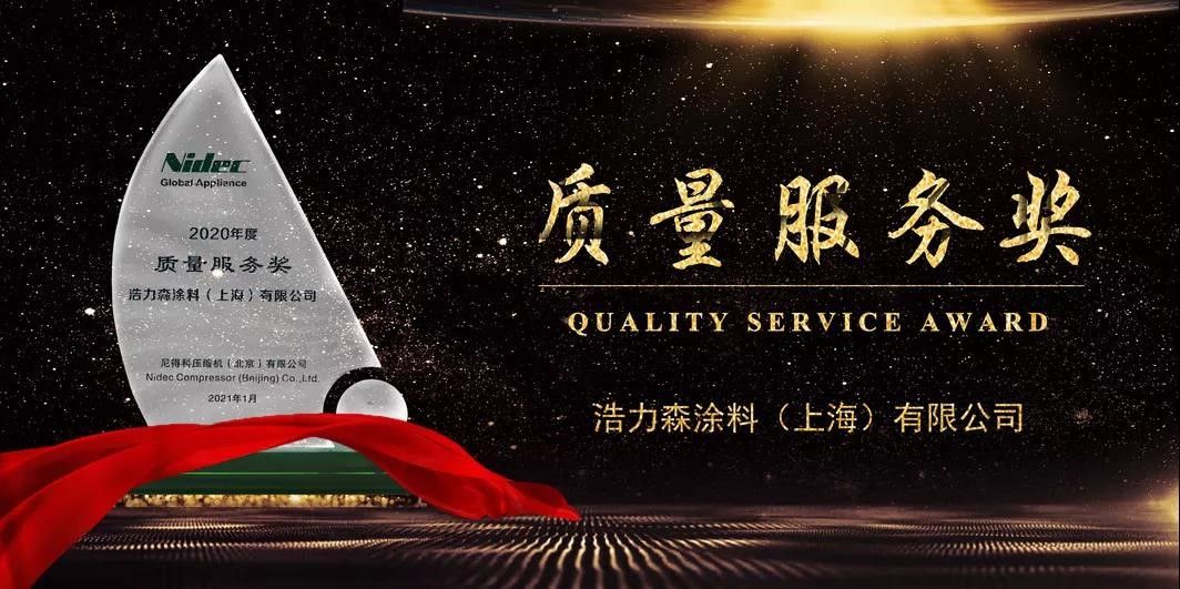 2021年1月,尼得科壓縮機(jī)(北京)有限公司舉行了"2020年度供應(yīng)商質(zhì)量大會",由于疫情影響,為了響應(yīng)國家號召,避免人員聚集,此次大會采用線上直播形式,全球各地的優(yōu)秀經(jīng)銷商代表、優(yōu)秀供應(yīng)商、以及其他相關(guān)部門工作人員等共同參與了此次直播。浩力森涂料榮獲了尼得科壓縮機(jī)“質(zhì)量服務(wù)獎”,載譽(yù)而歸。