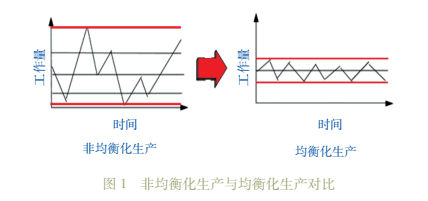 均衡生產(chǎn)是對特定時間內(nèi)產(chǎn)量以及上線產(chǎn)品組合的整體分配,在計劃生產(chǎn)時,我們需要在較短的時間內(nèi)平復生產(chǎn)的高峰和低谷,見圖 1。